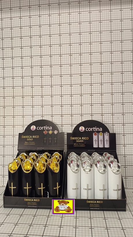 ŚWIECA RICO 17CM Z BATERIAMI SREBRNA    ZŁOTA 5907520038276   3/23/LUX.DIS